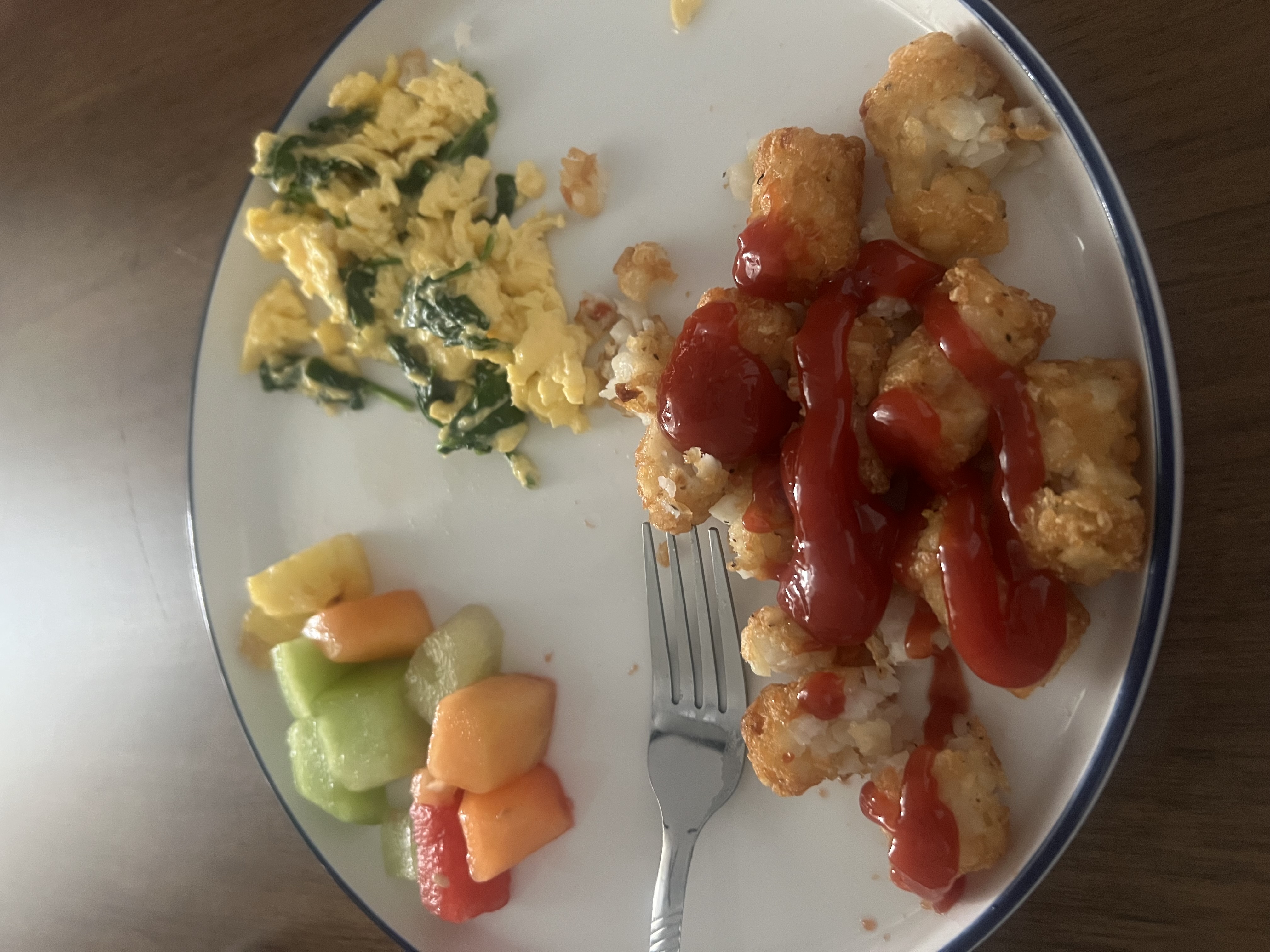 Erik Starks 3/12/2026 10:03 AMgood morning! ☀️ today i'm having potatoes with ketchup, eggs with spinach, and fruit. i also have a cup of hot chocolate because my house is cold. -