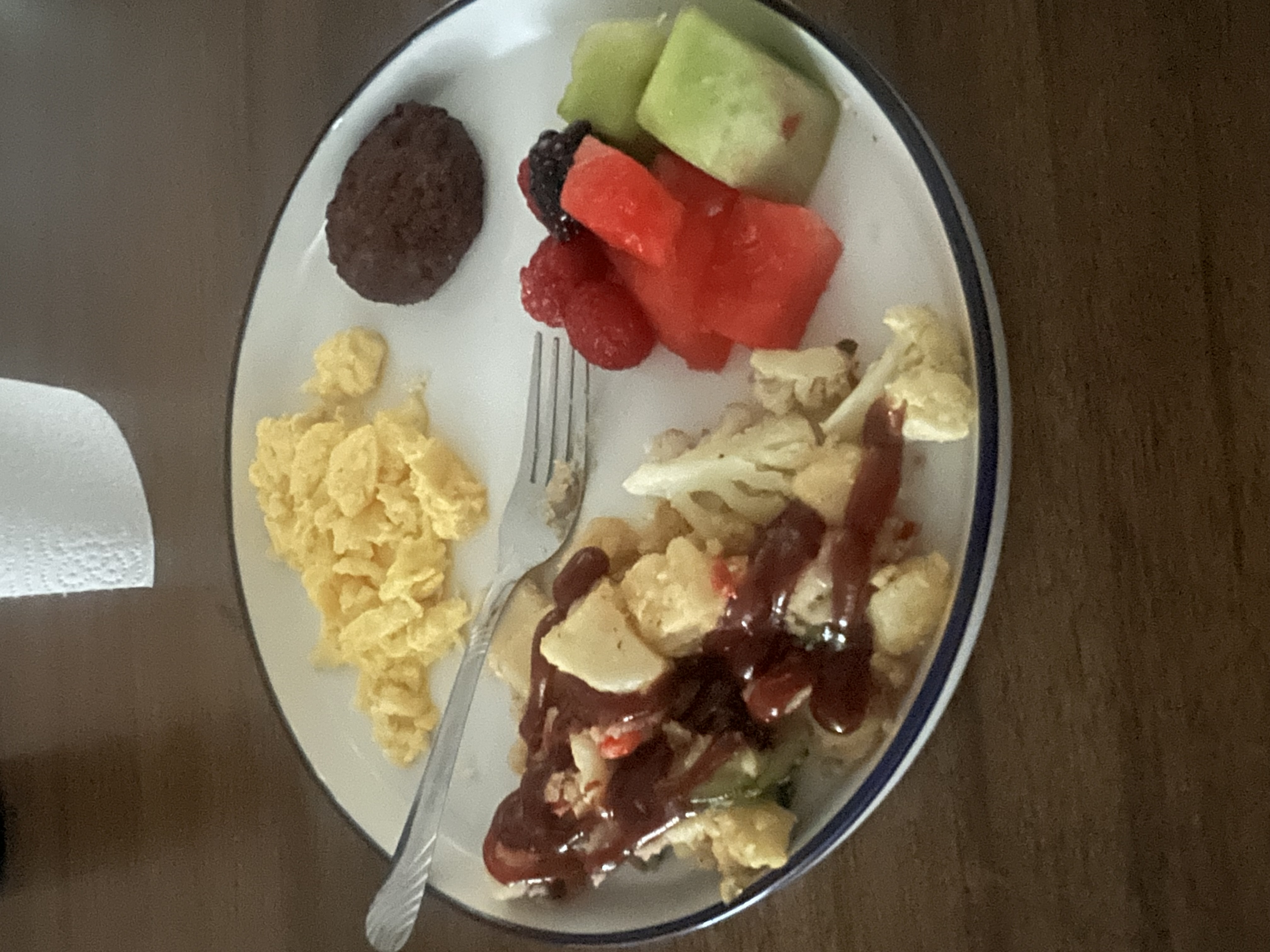 Erik Starks 3/16/2026 11:34 PMhaven't had much time to post today, but i thought i'd share the latest stuff i've had sans meat. this morning, i had eggs, potatoes with zucchini, plant-based sausage, cauliflower, and fruit. i also had some chai. very delicious!